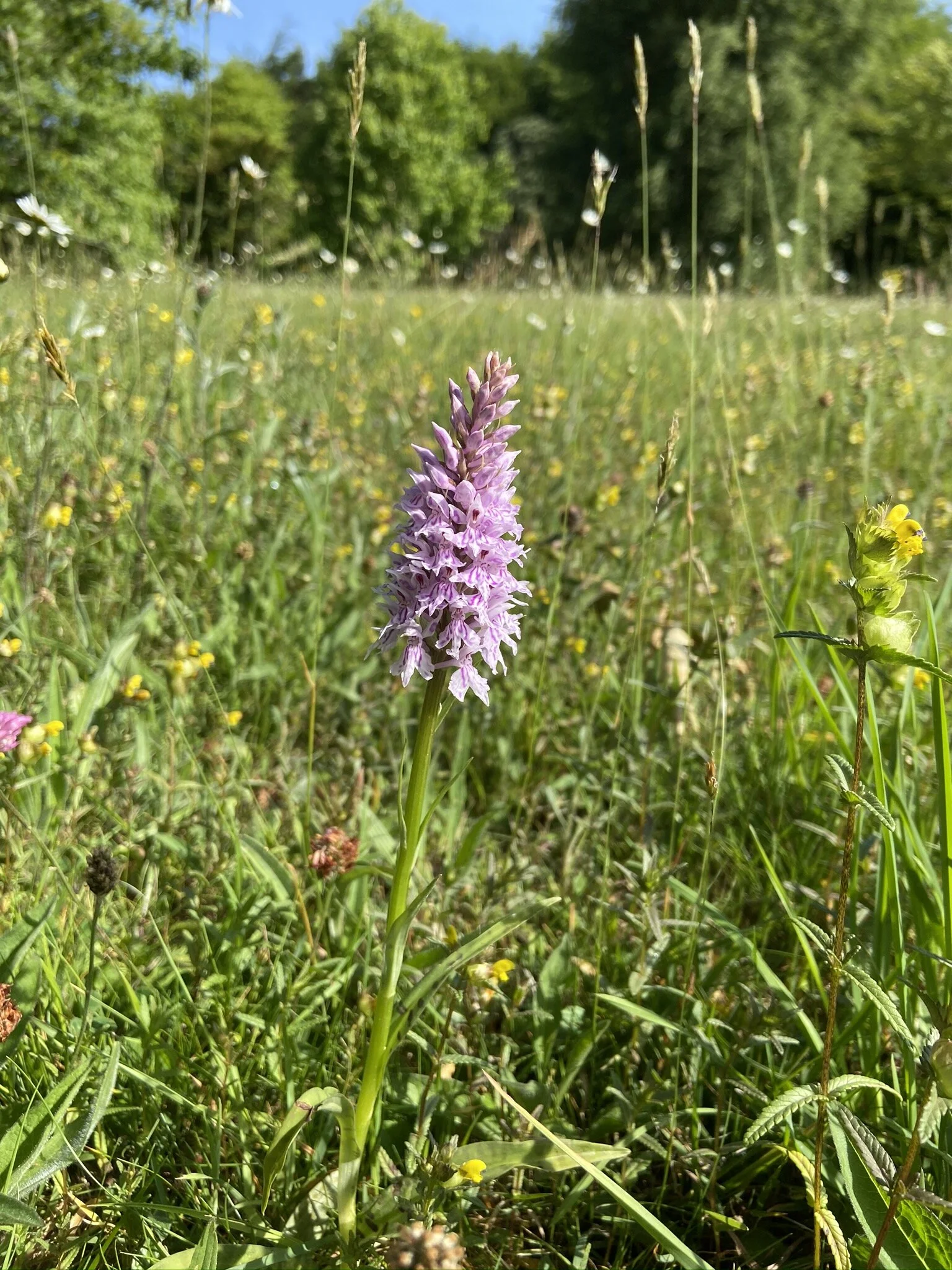 Collins says ‘Orchid of grassland and open woods on calcerous or neutral soils. FLOWERS Varying in colour from plant to plant, ranging from pale pink to pinkish purple; darker streaks and spots on lower lips, which has 3 even sized lobes and is 1cm across; in open spikes’